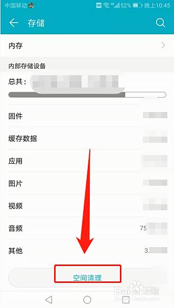 存储页面,打开“清理内存”。