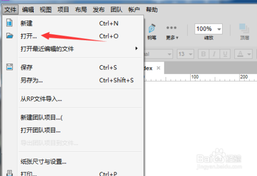 点击了的文件的菜单之后,弹出了下拉菜单选中为 打开 的选项。