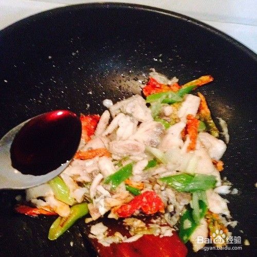 煸炒半分钟后,加入适量的盐、和3茶匙生抽。