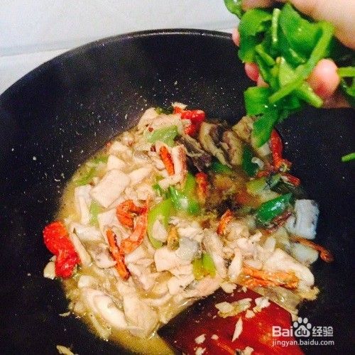 再煸炒半分钟后,加入少量的水,把鱼烩一下。