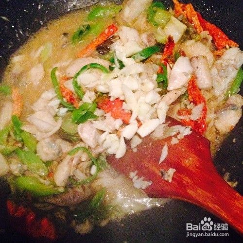 大火烩鱼出汤成乳白色时,加入青辣椒丝翻炒半分钟,加入蒜泥,大火再翻炒半分钟收汁,出锅即可。