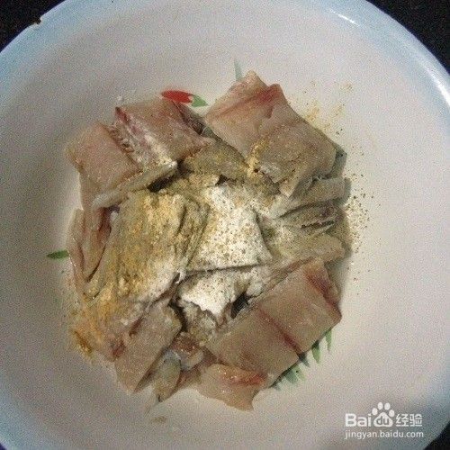 准备青鱼一条,洗净并切成鱼块,加入干淀粉、胡椒粉、姜粉腌渍半小时。