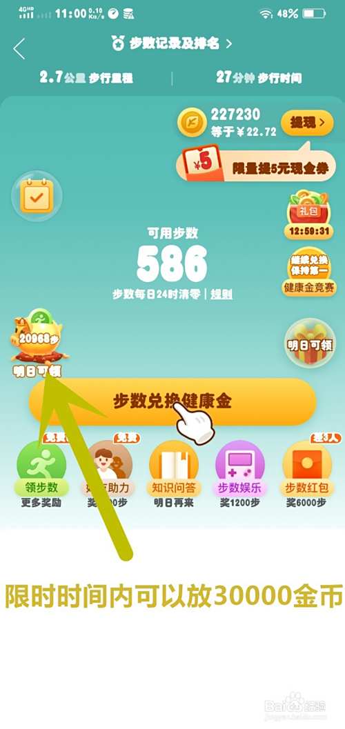 步数不够兑换去完成任务获取, 金猪储蓄罐在限时时间内可以存放30000金币。