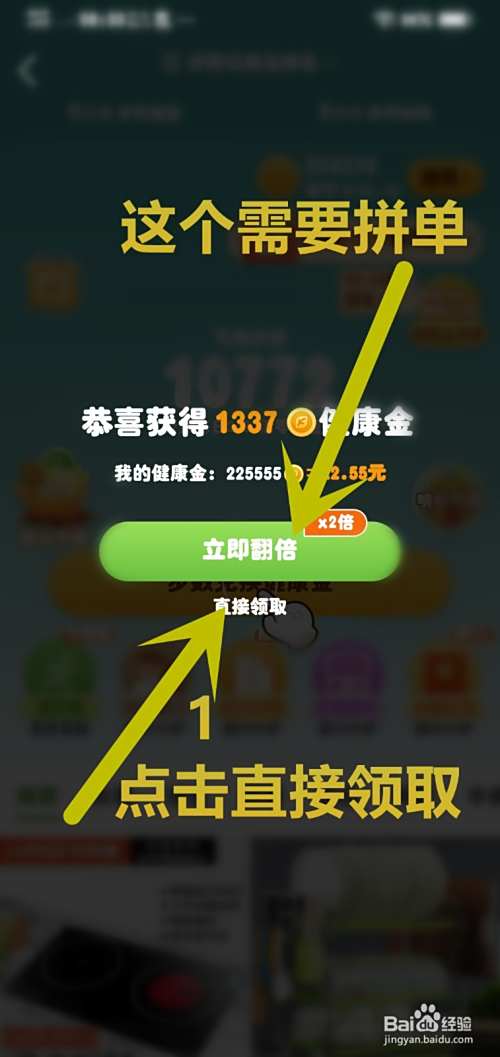 直接领取,如果你资金够也可以拼单领取翻倍健康金。