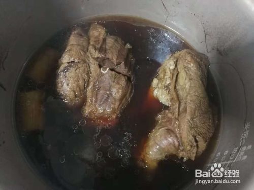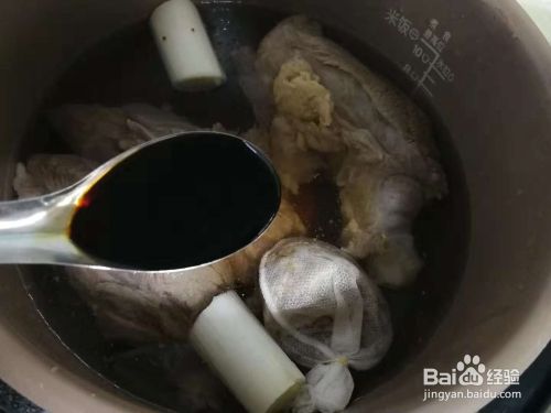 另添水,水量没过牛肉,加葱段,放调料包,加1勺盐、3勺老抽、3勺酱油。