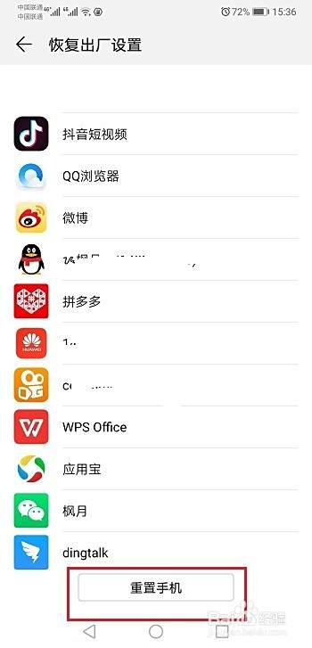 第五步进去之后,点击重置手机,恢复出厂设置之后,指纹设置就会出现,如下图所示: