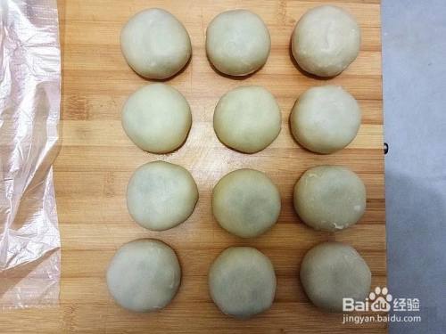 炒好的绿豆馅每个30-35克左右滚圆备用