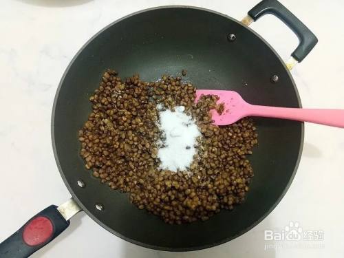 压好的直接倒入不粘锅,加入白糖、20克食用油(无色无味)炒制