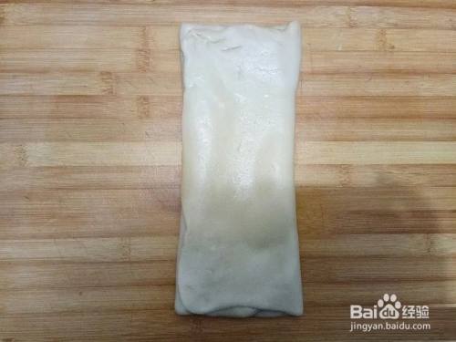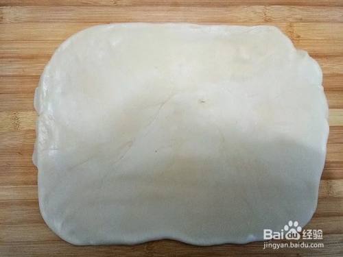 包好油酥的面团擀开,成长方形