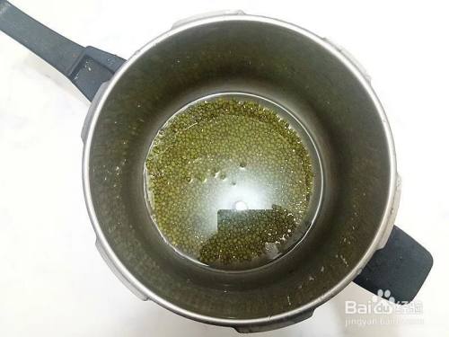 先准备馅料:绿豆、白糖,绿豆淘洗干净,加3倍水放入高压锅,上汽后压10分钟