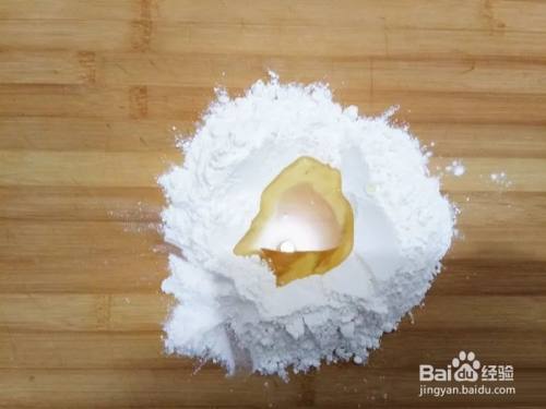 松弛水油皮的时候来做油酥,低筋粉在案板上开窝,倒入食用油