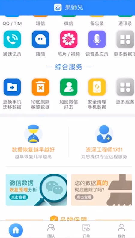 8果师兄支持微信好友、微信聊天记录、手机照片、备忘录等多种数据的恢复服务。