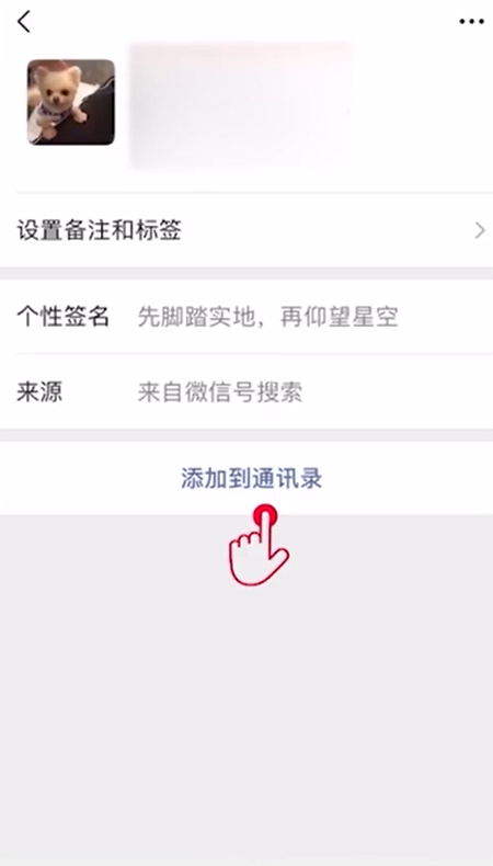 5找到好友头像,点击进入资料页,点击“添加到通讯录”即可。