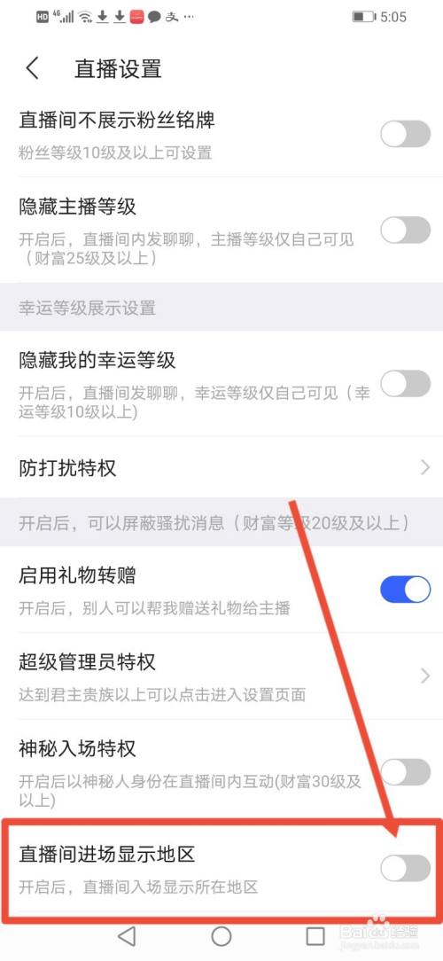 进入直播设置,接下来把【直播间进场显示地区】的按钮关闭即可。