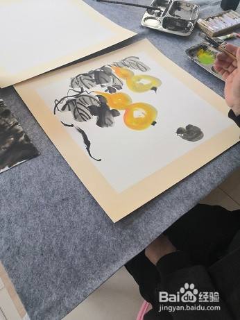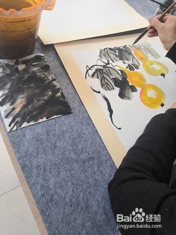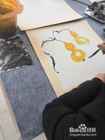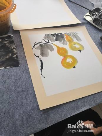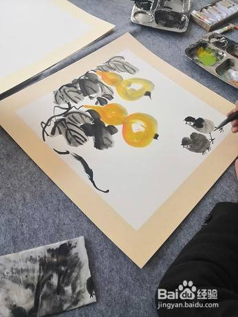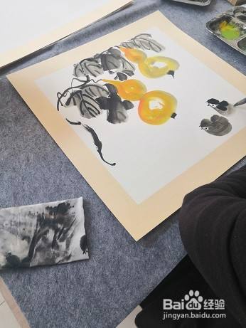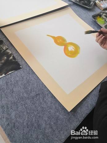 染葫芦叶时要注意浓淡,近处的较浓一点,远处的较淡一些。染小鸡也应注意浓淡。