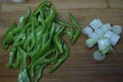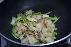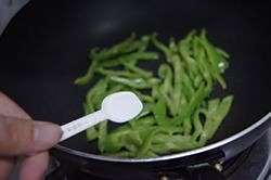 锅里再放油,下青椒炒至微软,少量盐给青椒调味