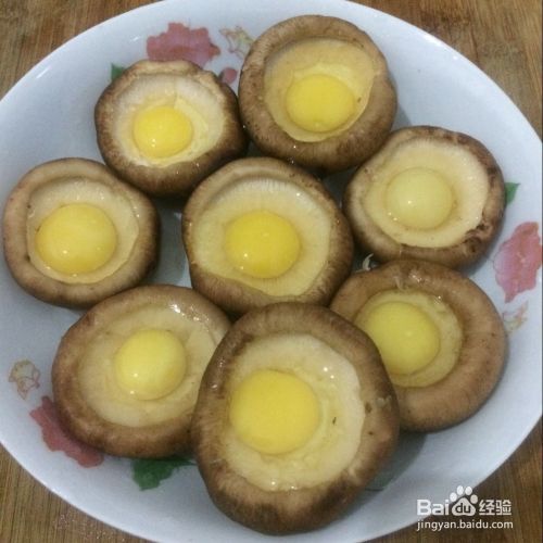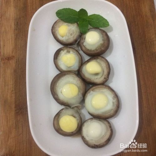 摆放在准备蒸的盘子里,每个香菇里放入一个鹌鹑蛋,要放平整不要歪斜,不然蛋液会流出。