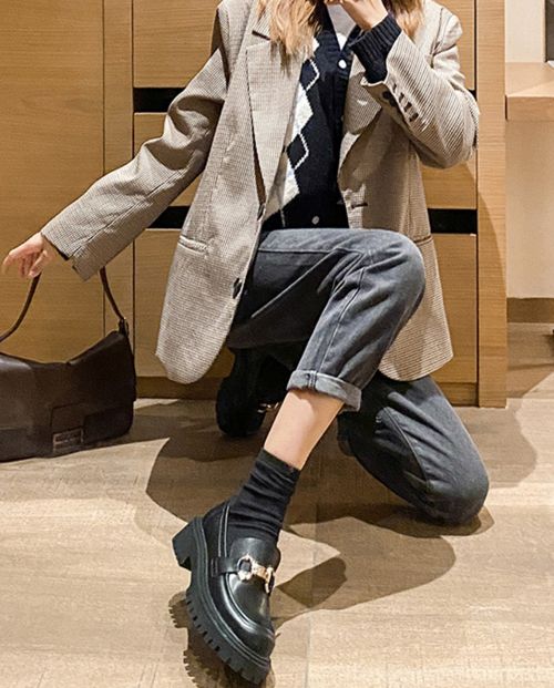 上脚试了试,挺合适大小可以,鞋底软软的,也不硬。真的就是时尚简约的小黑鞋,怎么搭配怎么好看。透气性也好,穿上很舒服,好看!鞋子上脚不磨脚,很舒服。去年也是网上买两双都磨脚,退了。这次买的上脚穿一天都还可以,对我来说不挤脚,不打脚,大小刚刚好。