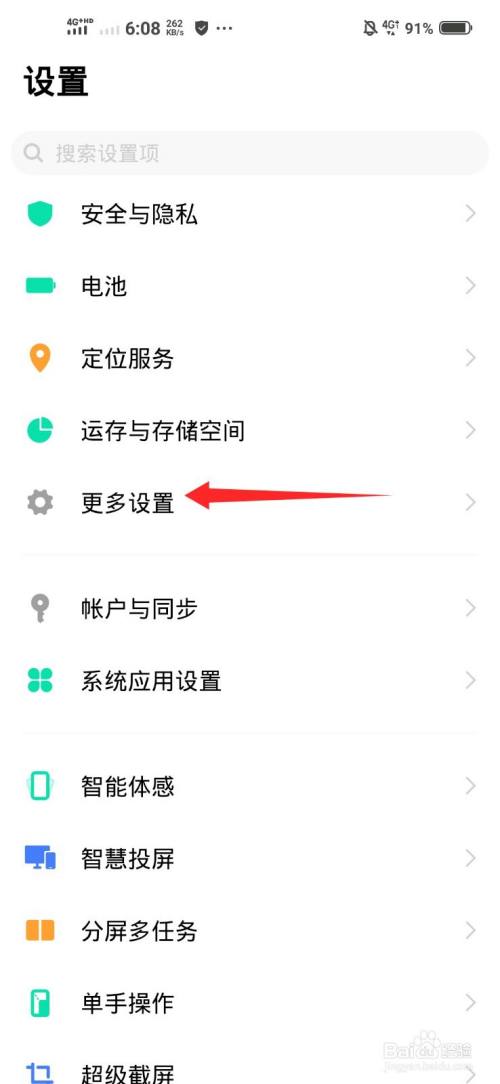 在设置页面,点击更多设置的选项。