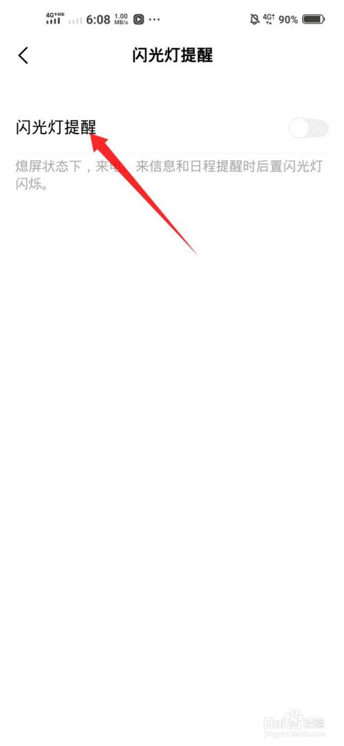 打开闪光灯提醒选项后面的开关即可。