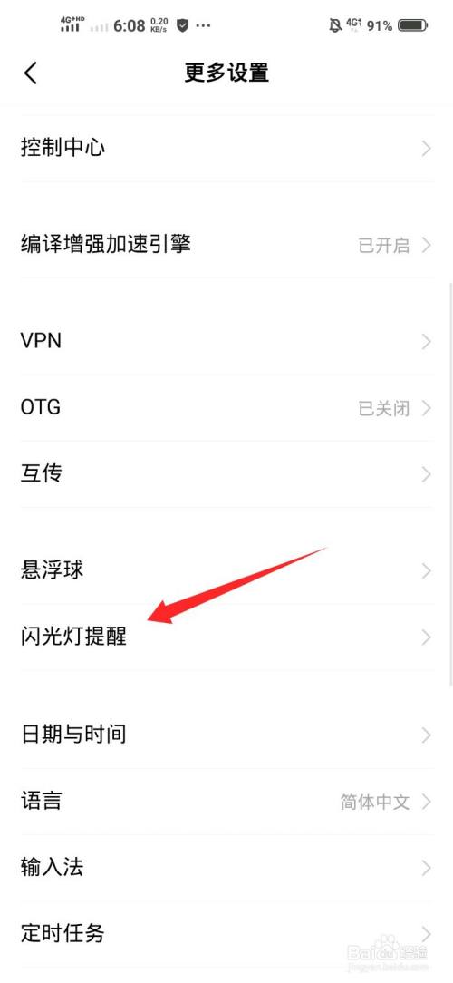 点击闪光灯提醒的选项。