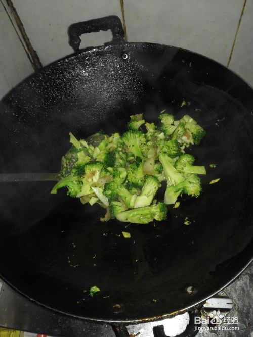 将切好的西兰花放入锅中;