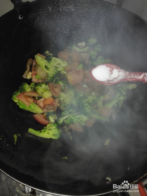 西兰花炒至七成熟时,加入切好的番茄;