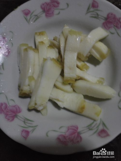 将肥肉洗净切成细条备用;