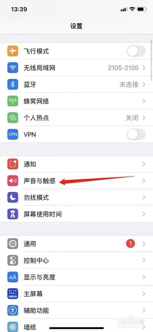 首先我们要进入苹果手机设置页面后,打开进入“声音与触感”选项。