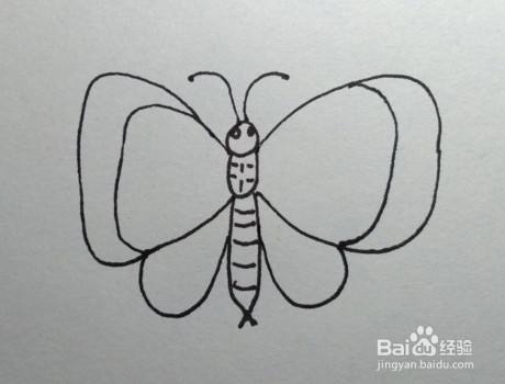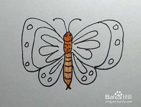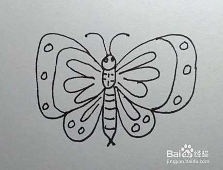 将蝴蝶的头、胸、腹部画完成,如图所示。