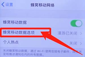 点击蜂窝移动数据选项