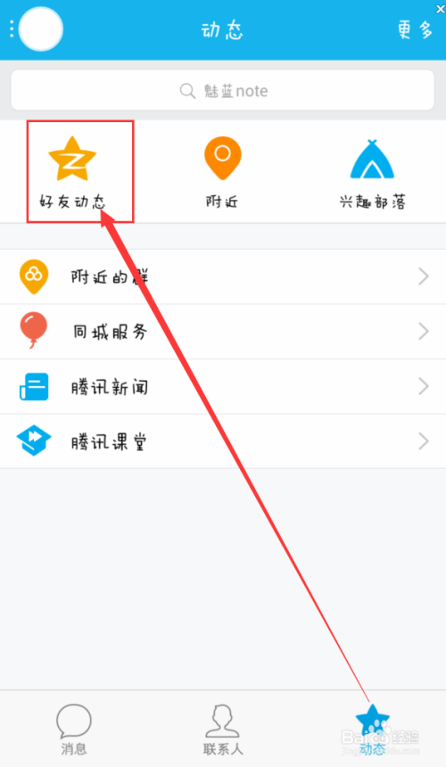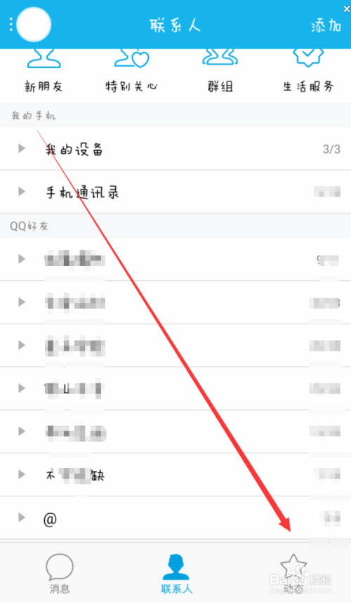 在QQ界面首先是进入QQ空间,点击“动态”。
