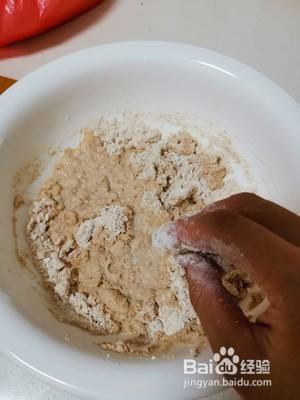 把红薯粉和成这个不软不硬的程度即可,在盆中备用。