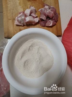将肉洗净切好,同时舀出适量红薯粉。