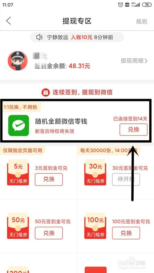 在下图中可以看到”随机金额微信零钱“,点击”兑换“按钮。