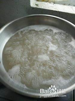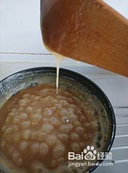 用大火熬制过滤出来的水,待水份蒸发的差不多转中火继续熬制,熬制期间要不停搅拌,待到糖浆在锅铲上不容易滴落即可完成
