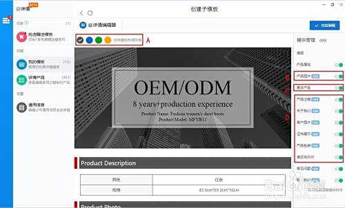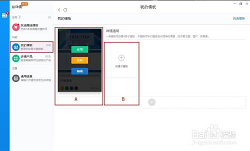 可以选择主模板也就是以下标示A的模板进行编辑,你也可以再创立其他子模板,也就是以下标示B的子模板进行编辑(每个主模板可以新建4个子模板)