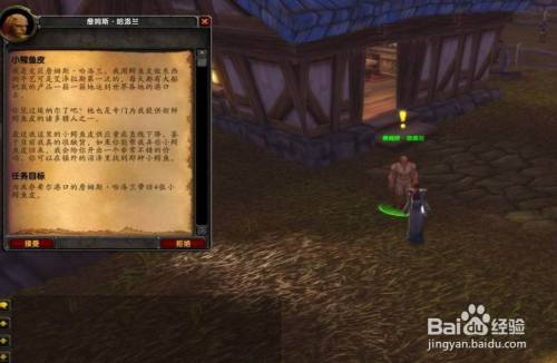 1、进入游戏,与詹姆斯·哈洛兰对话接受小鳄鱼皮任务。