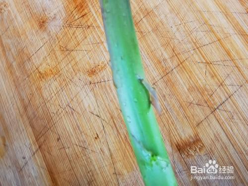 准备好芦笋和胡萝卜,对其进行处理。将芦笋表皮节点上的老皮去除,将胡萝卜削皮。