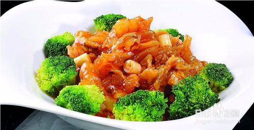 锅里加酱油,加白酒、水、胡椒粉、葱、姜和香油调成汤放入切好的蹄筋烧开倒入碗里泡味儿;再焯几朵西兰花备用。