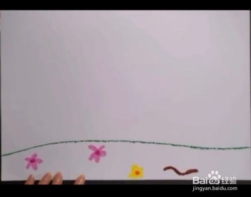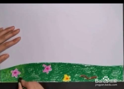 首先准备一张白纸在白纸上面,用油画棒画出一些简单的草地。