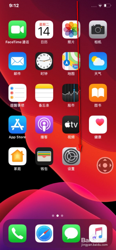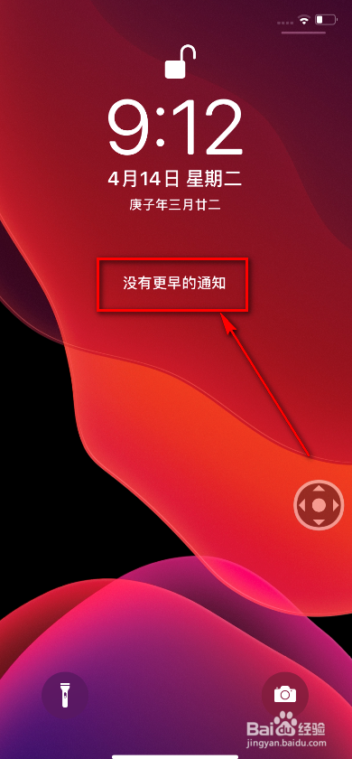 4、打开手机,手指从顶部向下滑动。