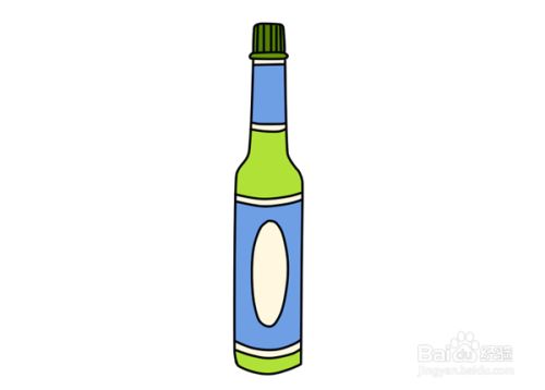 在瓶身上面,画几条弧线,表示瓶子上面的纸。