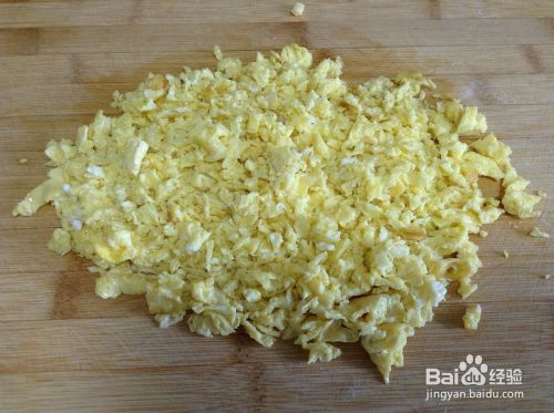 将煎好的鸡蛋,晾凉,剁碎备用。