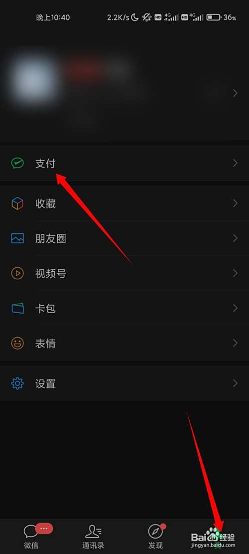 进入微信我的页面,点击支付的选项。