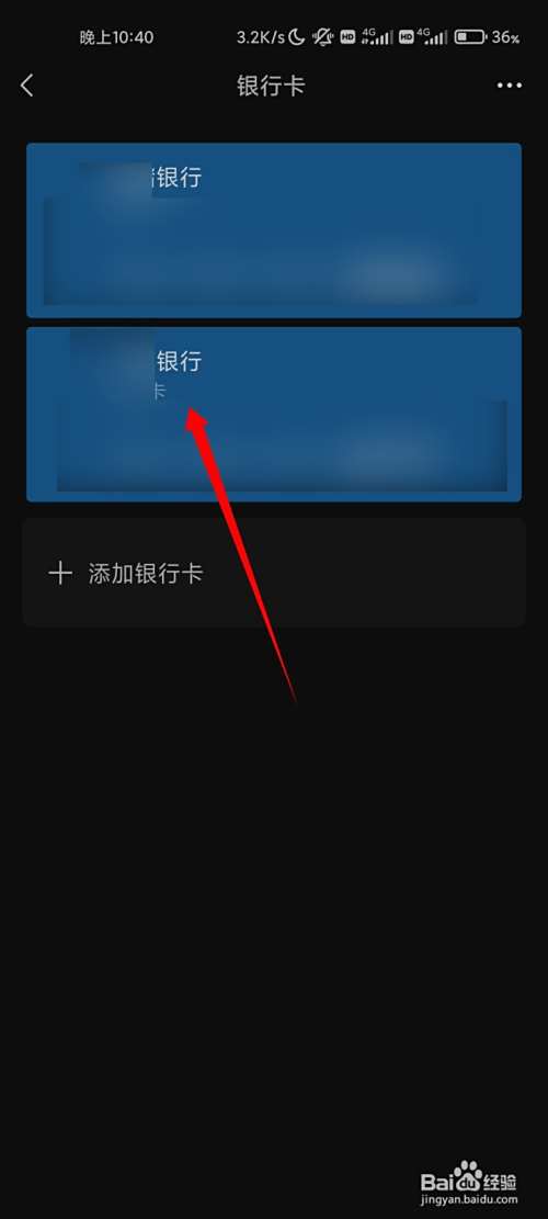 点击想要解绑的银行卡卡片。