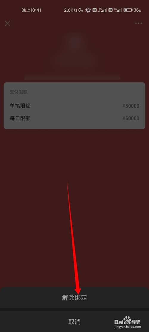 在底部弹出的菜单中,点击解除绑定的选项即可。