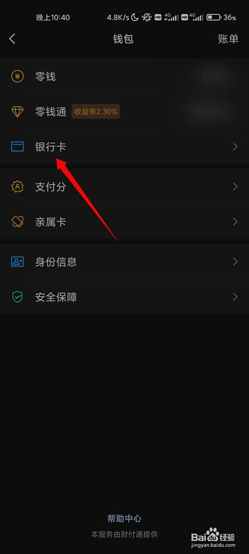 来到钱包页面,点击银行卡的选项。