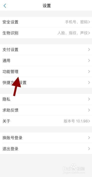 在设置页面,点击功能管理。