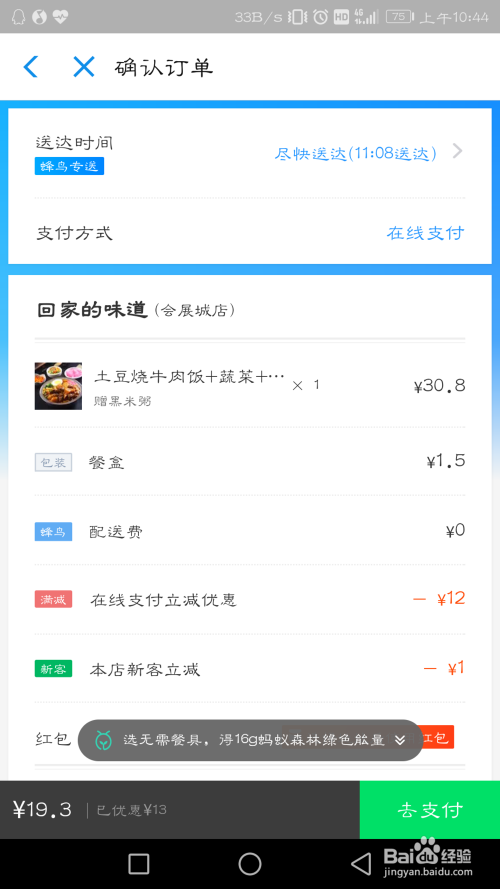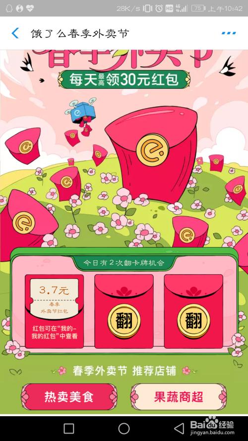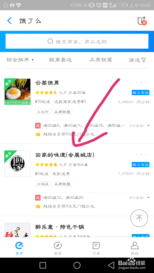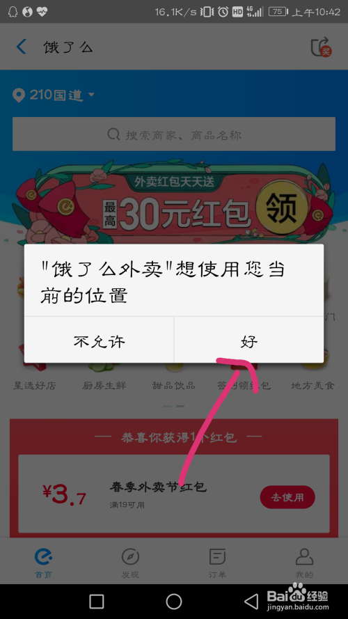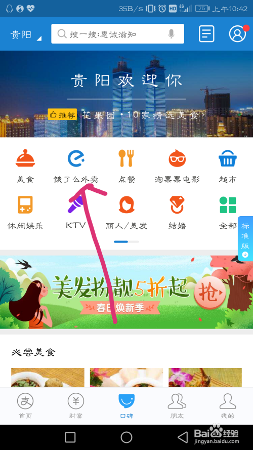 打开支付宝,从下方口碑页面,进入饿了么外卖